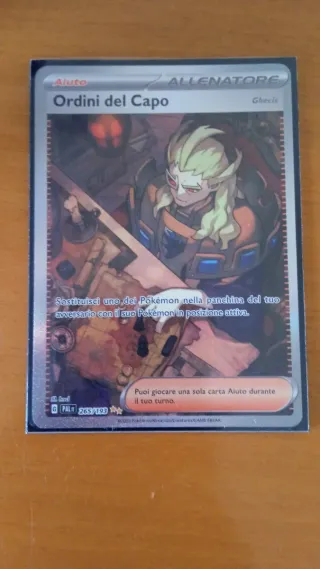 Carta Allenatore Ordini del Capo alternative art del set Scarlatto e violetto Evoluzioni a paldea - Carta Ordini del Capo (Ghecis). - Numero carta: 265/193. - Tipo: Allenatore. - Effetto: Sostituisci uno dei Pokémon nella panchina del tuo avversario con il suo Pokémon in posizione attiva. - Puoi giocare una sola carta Aiuto durante il tuo turno. #puglia #bitonto #bari #italia #cartepokemon #pokemon #nintendo #ordinidelcapo #alternativeart #carterare #cartesingole #evoluzioniapaldea