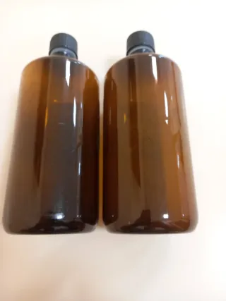 Vendo due flaconi vuoti in plastica color ambra, ciascuno da 1 litro di capacità. Ideali per conservare liquidi o per progetti fai-da-te. - Capacità: 1 litro ciascuno. - Materiale: Plastica. - Colore: Ambra.