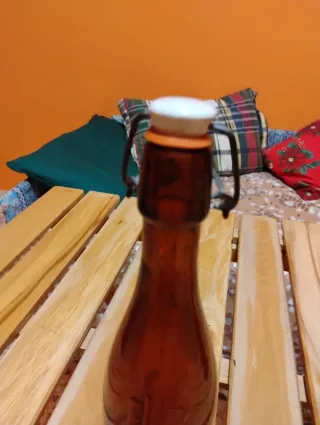 Vecchie bottiglie di birra con chiusura a tappo in ceramica. Altezza circa 25 e altre 27 cm. Bottiglie in vetro ambrato. Tappi in ceramica bianca con anello metallico. Prezzo per unità.