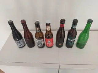 Collezione di miniature di bottiglie di birra e bibite. Ideale per collezionisti. Le bottiglie sono in vetro e si trovano in buono stato. Circa 7-8 cm. 2 euro l'unità, spedizione a partire da 10 euro, più articoli nel mio profilo. NON adatto al consumo. NON contiene alcol. Perfette per decorazione o collezione.