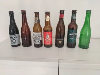 Lott di bottiglie vuote di diverse marche di birra, ideali per collezionisti o per progetti di artigianato. - Bottiglia Birra Paulaner Hefe-Weißbier - Bottiglia Birra Desperados - Bottiglia Birra Budweiser - Bottiglia Birra BRE - Bottiglia Birra CERVESA DE NADAL 2014 - Altre disponibili!! Vendute per pulizia del garage.
