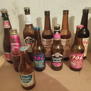 Vendo lotto di 5 bottiglie di birra Ambrata e Estrella Galicia delle Feste del Pilar. - Include 4 bottiglie Ambrata 2019 da 20 cl, 2019 da 33 cl, 2018 da 33 cl e 2022 da 33 cl - Una bottiglia di Estrella Galicia 2019 da 33 cl. - Design speciale Feste del Pilar. - Ci sono due bottiglie senza etichetta originale e una bottiglia con etichetta mancante, tutte le 5 bottiglie sono vuote. - Non le vendo separatamente.