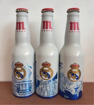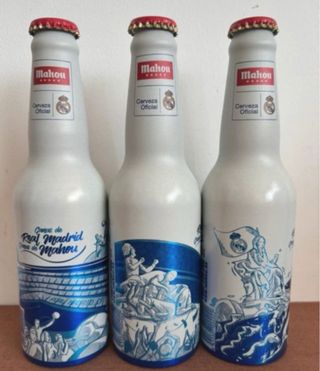 Set di 3 bottiglie di birra Mahou con design speciale del Real Madrid. - Edizione da collezione. - Design esclusivo. - Birra ufficiale. Bottiglie perfette vuote