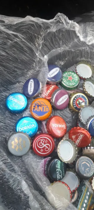 Collezione varia di etichette di bottiglie di bibite e birra. Etichette di marchi come Fanta, Coca-Cola, Heineken, Dorada, Fonteide, Paulaner e Strongbow. Design e colori diversi. Ideale per collezionisti.