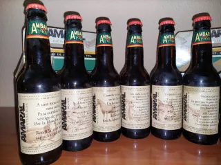 Bottiglia di birra Ambar 1900, edizione speciale Héroes del Silencio. Sono 6 bottiglie in perfetto stato, vuote ma con i tappi ben messi.