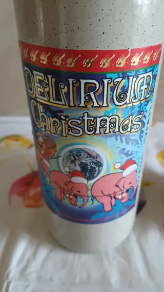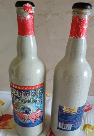 Vendesi 2 bottiglie vuote di birra Delirium Christmas. - Bottiglie in ceramica con etichetta. - senza tappo vuote