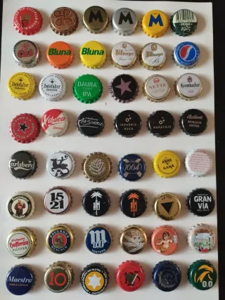 Si vendono 700 tappi di bottiglie di birra, come mostrato nelle foto, ideali per collezionismo, decorazione o vari lavori manuali, tutti a 25€, ritiro zona Carabanchel, spedizione in penisola a carico dell'acquirente, non si effettua contrassegno, contattare via WhatsApp