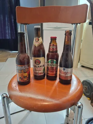Lotteria di 4 bottiglie di birra da collezione. La Isleña ha il sigillo molto deteriorato; quello della bottiglia ceca non lo è tanto, ma non è perfetto. Il prezzo è per tutte e 4, se si vuole una singola, i prezzi sono i seguenti: - Bottiglia Isleña Premium Beer (2,50 euro) - Bottiglia Alterhallinster Premium Bavarian (5 euro) - Bottiglia Fischer Bière Blonde Spéciale d'Alsace (5 euro) - Bottiglia Rohozec Skalak (4 euro)