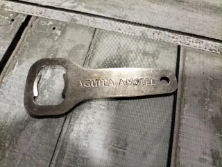 Apribottiglie in metallo per bottiglie di birra. Design classico con incisione Águila Amstel.
