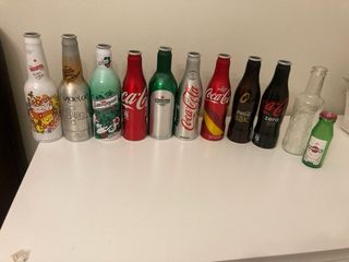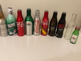 Lote di bottiglie da collezione di diverse marche. - Bottiglia Coca-Cola Zero - Bottiglia Coca-Cola Blak - Bottiglia Coca-Cola - Bottiglia Coca-Cola - Bottiglia Heineken - Bottiglia San Miguel - Bottiglia Maeloc - Bottiglia Listen to your heart - Bottiglia Martini - Bottiglia di vetro trasparente Sono 11 e il prezzo è negoziabile, ma si vendono tutte insieme. Sono in alluminio