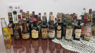 Collezione di 150 repliche di bottiglie di liquore di diverse marche e dimensioni. Ideale per collezionisti. Varietà di design e colori. Bottiglie di vetro. Tappi di materiali diversi. In vari stati; collezione degli anni '80. Si trovano a Sarria; per ritiro, o in caso di spedizione ci vorranno un paio di settimane per la spedizione.