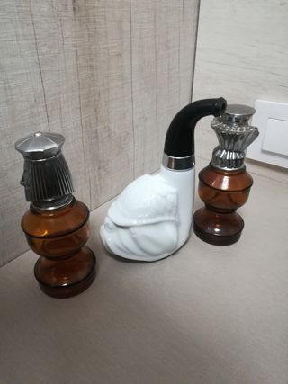 Vengono vendute tre antiche bottiglie di profumo Avon. Sono oggetti da collezione unici. - Includono una bottiglia a forma di re, un'altra di regina e una terza a forma di pipa. - I vasetti sono in vetro e sono in buone condizioni. - Perfetto per i collezionisti o gli amanti degli oggetti vintage.