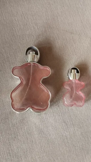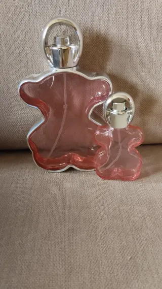 Due flaconi di profumo vuoti del marchio Tous, con il loro caratteristico design. - Design a forma di orso. - Tappo argentato. - Bottiglie di vetro rosa. Altri prodotti del marchio nel mio profilo