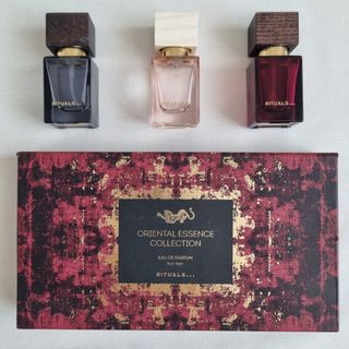 Tre boccette di profumo vuote come da foto, complete di tappo e spruzzo.Spedisco rapidamente.