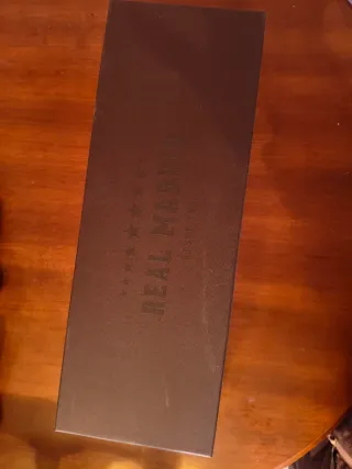 Porta bottiglie elegante in pelle del Real Madrid. Ideale per collezionisti o appassionati di calcio e amanti del vino. Design con lo stemma e le stelle del club. Colore marrone scuro. Prodotto in pelle.
