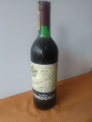 NOME: VIÑA TONDONIA ANNATA: 1985 D.O: Rioja (cal) Classe/tipo: Reserva Cantina: R. Lopez de Heredia Viña Tondonia S.A. (Haro-Rioja Alta) Conserva elementi originali. Usura dovuta al tempo. Pezzo da collezione o decorazione. Ideale per collezionisti, decorazione rustica, cantine, ristoranti o vetrine. Non conservato per il consumo. Stato di conservazione interno sconosciuto. Disponibili altre bottiglie antiche nel mio profilo. Possibilità di fare lotti se ti interessa più di un pezzo. Ascolto offerte ragionevoli. Preferibilmente consegna a mano. Si vende come si vede nelle foto.