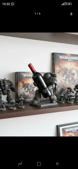 Supporto originale per bottiglie di vino con design ispirato a Warhammer. - Figura di space marine. - Base stabile per bottiglie. Posso stampare in altri colori se preferisci.