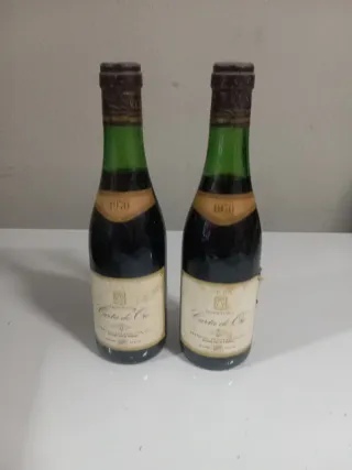 Due bottiglie di vino da collezione, marca Carta d'Oro, dell'anno 1970. - Bottiglie in vetro verde. - Etichette originali. - Tappi in sughero.