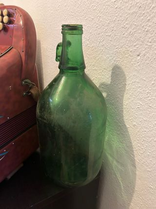 Coppia di antiche bottiglie in vetro verde con patina originale. Una delle due è una bottiglia di Quina San Clemente, un vino a base di china molto popolare in Spagna dalla fine del XIX secolo e per gran parte del XX secolo. La seconda bottiglia è anch'essa antica, in vetro soffiato, senza dati specifici di origine. Entrambe presentano bolle e irregolarità tipiche della produzione antica. Buono stato generale per la loro età, senza crepe o rotture. Ideali per decorazione rustica, case di campagna, cantine o collezionismo. Vendute insieme, come si vedono nelle foto.