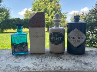 Set di bottiglie di gin vuote, perfette per collezionisti o per progetti creativi. Possibilità di essere vendute singolarmente: Hendriks: 2€ Wint: 3€ Adamus: 5€ Portofino: 10€
