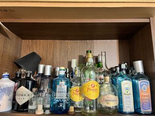 Se vende lote de botellas de ginebra de diferentes marcas y modelos. Ideal para coleccionistas o para quienes disfrutan de probar distintas ginebras. - Variedad de botellas de ginebra. - Algunas botellas pueden tener etiquetas o diseños distintivos.