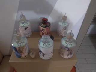 Set di 6 bottiglie vuote di Gin J.Rose, con illustrazioni di Milo Manara e F. Palma. Sono presenti la N` 1 - 2 - 4 - 6 - 8 e la bellissima flamenco. - Edizione speciale. - Illustrazioni artistiche. - Perfette per collezionisti o come pezzi d'arredo.