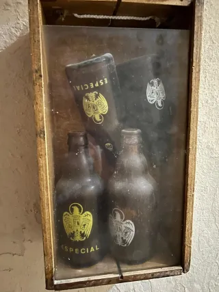 Antica scatola di birra El Águila con bottiglie