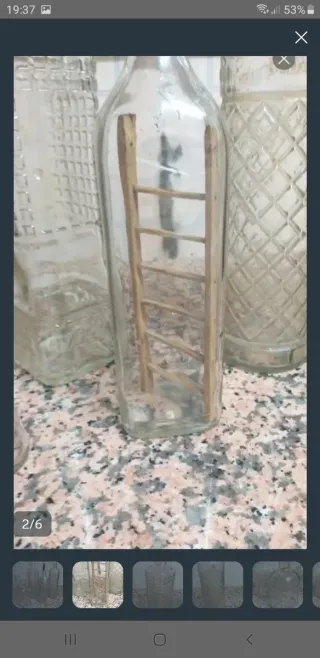 Set di tre vecchie bottiglie di vetro, perfette per decorazione o collezionismo. - Bottiglia grande con tappo 26cm alta, 9cm di diametro. Ha fratture interne nel collo ma non è rotta né incollata, è all'interno del vetro (vedi foto) - Bottiglia media con tappo 14cm alta, 5cm di diametro - Bottiglia piccola con tappo 7cm alto, 3cm di diametro. Ha alcune bolle all'interno del vetro del tappo. Stato abbastanza buono nonostante la sua età.