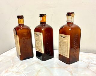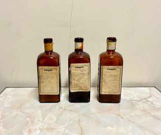 3 Vecchie Bottiglie di Farmacia in Ambra