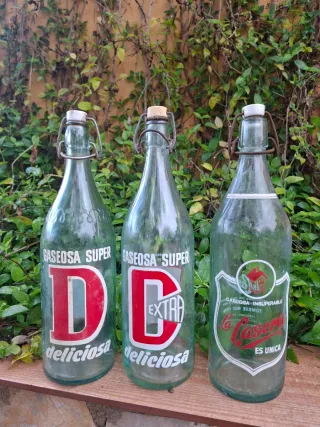 Set di vecchie bottiglie di gassosa, perfette per collezionisti. - Bottiglie di vetro con tappi meccanici. - Design di etichette vintage. - Varietà di marche e modelli. Ho diverse repliche di El Cid e Casera! Cinque euro per unità! Se acquisti un lotto, ti faccio prezzi speciali.