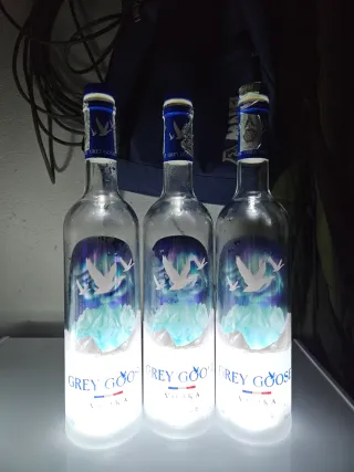 Set di 3 bottiglie vuote di Grey Goose Luminous, edizione limitata vuote senza alcol - Design luminoso e accattivante. - Ideali per collezionisti o come pezzi decorativi.