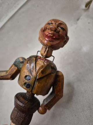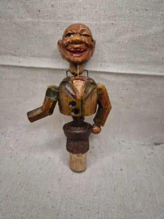 Tappo per bottiglie in legno con un personaggio animato. - Realizzato in legno intagliato. - Dettagli dipinti a mano. Da revisionare il movimento e non completo