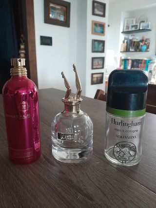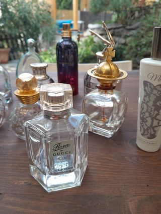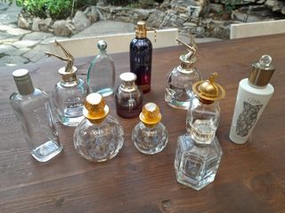 Collezione bottiglie vuote due di vetro ,una di latta.