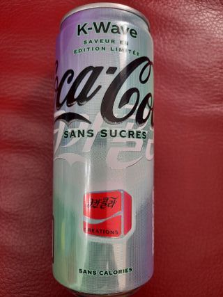 Lattina di Coca Cola K-Wave, edizione limitata. - Senza zuccheri. - Senza calorie. - Design K-Wave.