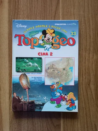Rivista Topogeo Disney Junior numero 33, dedicata alla Cina parte 2. - Copertina con Topolino. - Illustrazioni e mappe sulla Cina. - Argomenti trattati: Yurte nella steppa, La residenza del Dalai Lama a Lhasa, Monaco Tibetano.