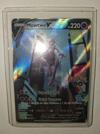 Carta Pokémon Mewtwo V, numero 072/078. - Attacco: Superrayo Psi - Attacco: Golpe Traspaso - Debolezza: x2 - Resistenza: -30 - Ritiro: 2 - Regola V: Quando il tuo Pokémon V viene messo Fuori Combattimento, il tuo avversario prende 2 carte Premio.