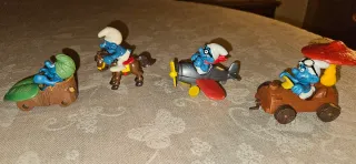 4 Superpuffi con mancanze Pejo/Schleich Puffo in auto 40264 - no ruote Puffo a cavallo 40221 - no dondolo Puffo aviatore 40222 - no parabrezza Puffo automobilista 40232 - no fari