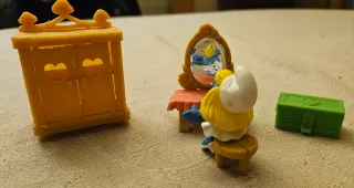 Camera Puffetta della Pejo/Schleich 40602. Comprende: Armadio con ante e ripiano Tavolo con specchio Sgabello Cassapanca Puffetta