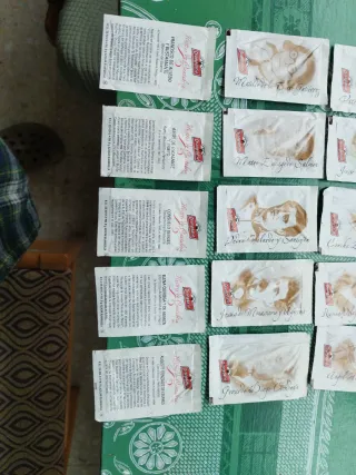 Lotteria di bustine di zucchero della marca Dromedario. Ogni bustina presenta un ritratto e il nome di una figura storica o letteraria spagnola. Sono 15 unità serie completa: Francisco de Alsido y Bustamante, Matilde de la Torre Gutiérrez, Vicente Trueba Pérez, Amós de Escalante y Prieto, Mateo Escagedo Salmón, José María de Pereda, Consuelo Berges, Pedro Pelardo y Santigón, Concha Espina y Tagle, Elena Quiroga de Abarca, Jesús de Monasterio y Agüeras, Ramón Pelayo de la Cortina, Augusto González de Linares, Gerardo Diego Cendoya, Ángel Herrera Oria.