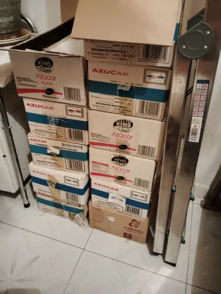 Confezione di bustine di zucchero di diverse marche e tipi. - Bustine di zucchero bianco. - Bustine di zucchero di canna. - Bustine di zucchero con pubblicità di ristoranti e diverse marche di caffè. Contengono zucchero, varie scatole da circa 6 kg ciascuna. La scatola di bustine con zucchero costa 35€ ciascuna.