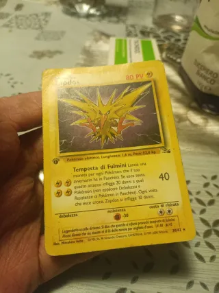 Carta Pokemon Zapdos Base. 1° edizione