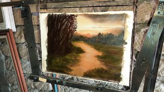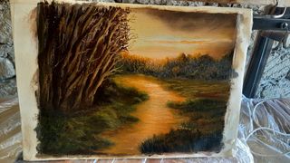 Olio su tela paesaggio lago tramonto 35 cad. uno.