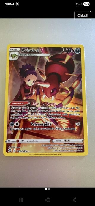 Carta Pokémon Ariados della serie Gallery. - Carta: Ariados - Numero: TG09/TG30 - Abilità: Rete del Ragno - Attacco: Velenospina - Debolezza: Fuoco x2 - Resistenza: Psichico - Costo di ritirata: 2 Energie