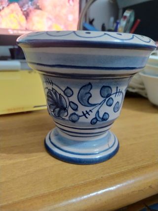 Maioliche Deruta Raro Mortaio Farmacia/ Erboristeria Anni 60/70 con decorazioni floreali blu. Base a piedistallo.