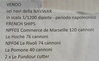 Lotto di navi napoleoniche della NAVWAR in scala 1/1200 Quantità e tipologia li trovate nella seconda foto allegata Alcune da sistemare ma i pezzi ci sono tutti