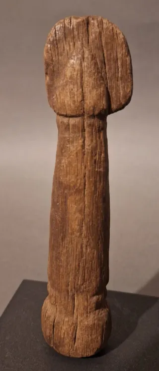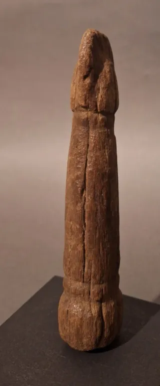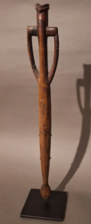 Antica fionda lanciasassi proveniente dalla cultura Gouro. - Realizzata in legno. - Decorazioni tipiche. - Pezzo da collezione. H 16,5 cm Bella patina