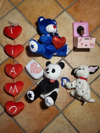 TUTTI IN OTTIMO STATI E CON POCHISSIMI SEGNI DI USURA. Per qualsiasi informazione chiedete pure. Sono disposto sia a venderli in lotto (con sconto) sia venderli separatamente. - *5€* per ogni peluche, disney e baci perugina, riempibile di cioccolatini - *5€* scritta ti amo cuori appendibile - *10€* carillon rosa orsetto - *2€* busta bianca piccola con cuore rosso - *25€* al posto di 32 se comprati in lotto ALTRI PELUCHE LI HO PUBBLICATI NELL'ALTRO ANNUNCIO (peluche)