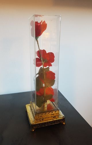 Curioso carillon con carica sotto e luci che si accendono a intermittenza - Materiale vetro e plastica - Anno di fabbricazione sconosciuto - Misure cm.34x12 - Base dorata scolorita come da foto allegate - Tutto come foto allegate
