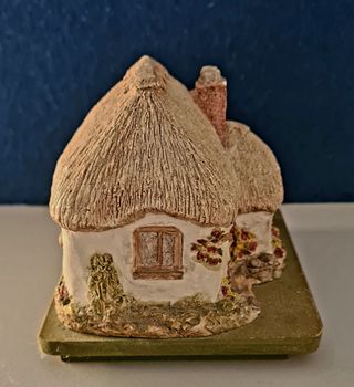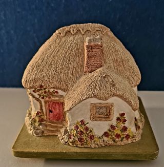 Carillon vintage, serie Pauline Ralph, soggetto cottage inglese ceramica dipinta musica: home sweet home prodotto nel Devon. Inghilterra, 1968 ottime condizioni Carillon funzionante
