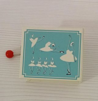 Carillon tascabile con un'illustrazione di ballerine. - Design con ballerine in diverse pose. - Colore di sfondo azzurro.